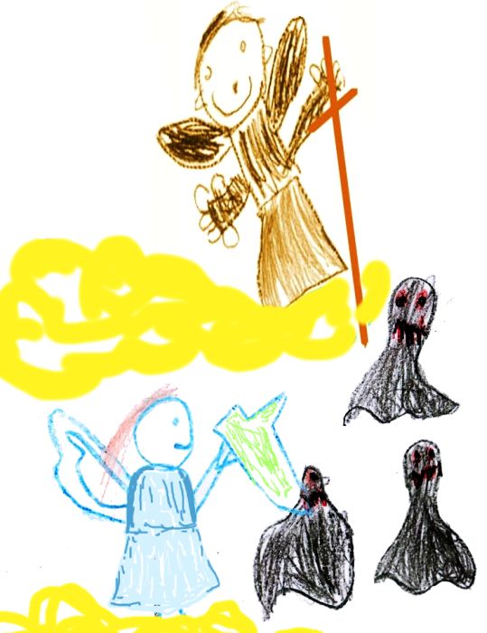 Rysujemy aniołów ze skrzydłami, żeby ktoś, kto patrzy na obrazek, wiedział, że jest na nim narysowany nie człowiek, ale anioł.